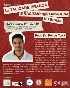 Seminário “Letalidade Branca e Racismo Anti Indígena no Brasil” chega na UFSC no dia 31 de outubro!