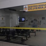 projeto de extensão Reestruturação Física e Didático-Pedagógica do EMAJ, o Escritório Modelo, ainda no Anexo II, passou por modernizações pedagógicas, metodológicas e também em seu espaço físico, com a criação de quatro salas, cada qual com cinco estações de atendimento e o espaço docente. Ainda, houve a separação das áreas administrativa e acadêmica, com o objetivo de melhorar o desempenho das atividades do corpo técnico-administrativo e o contato entre discentes e docentes (Egger, 2012, p. 3-4). Os(as) estagiários(as), até então distribuídos em dez equipes totais, com média de quatro estudantes, passaram a compor cinco equipes sala, trabalhando em duplas em cada estação de atendimento. Em 2005, com a inauguração do Bloco F do CCJ, o EMAJ passou a ocupar espaço térreo, ainda na mesma configuração, local onde permanece atualmente (Egger, 2012, p. 4).